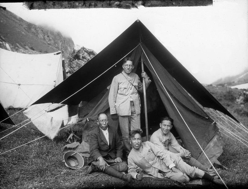 Arnold Heim (standing) & Paul Sherap (seated, left), near Minya Konka, 1930. [ETH Library Zurich]
